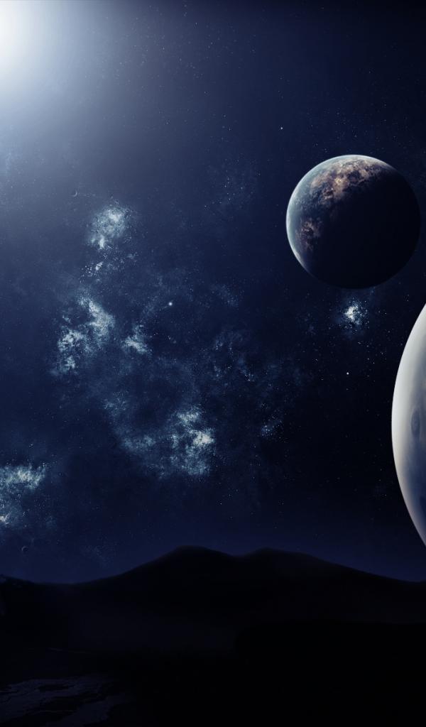 Wallpaper Planet over the mountains