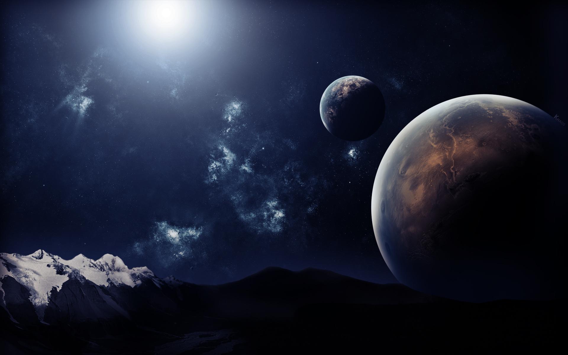 Wallpaper Planet over the mountains