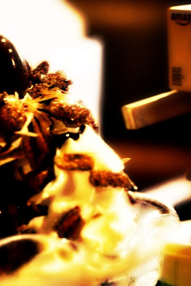 Wallpaper Cardboard man looks at a cake