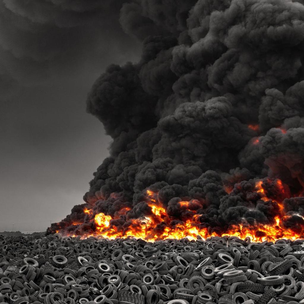 Wallpaper The fire at the dump old tires