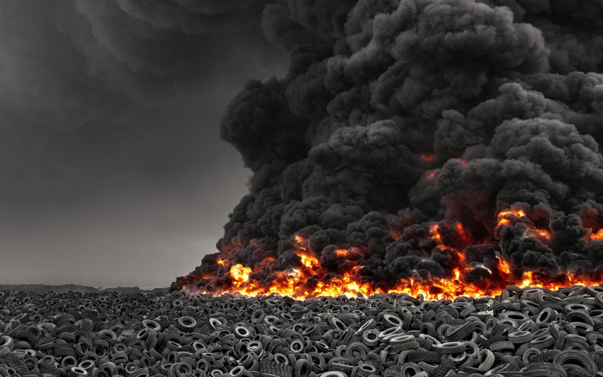 Wallpaper The fire at the dump old tires