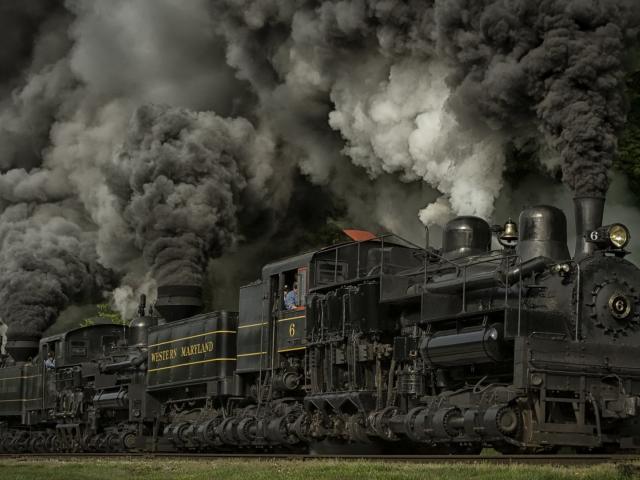 Wallpaper Steam locomotive in the cloud of black smoke