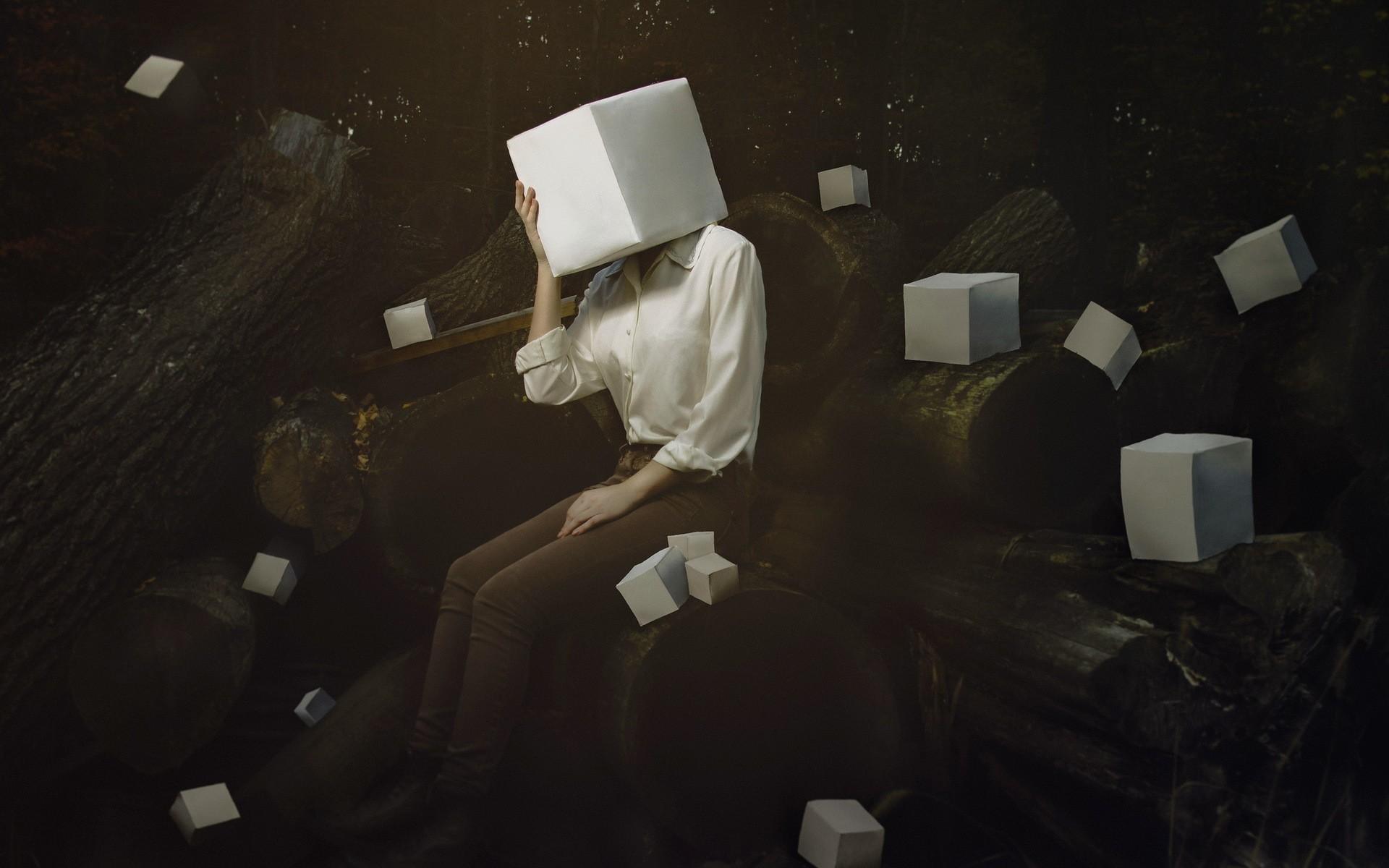 Wallpaper White cube for a head