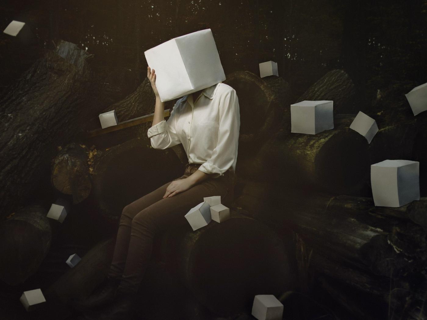 Wallpaper White cube for a head