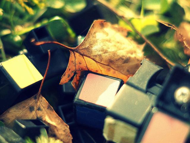 Wallpaper The wreckage of the Rubik`s Cube are among leaves