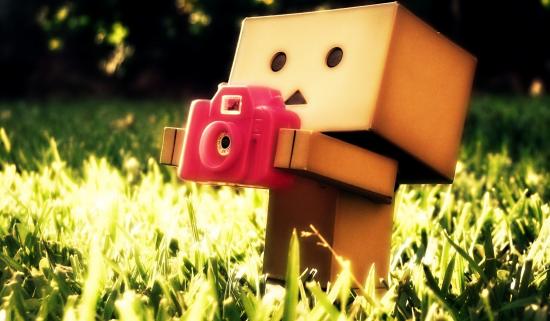 Wallpaper The cardboard man with a camera in the grass