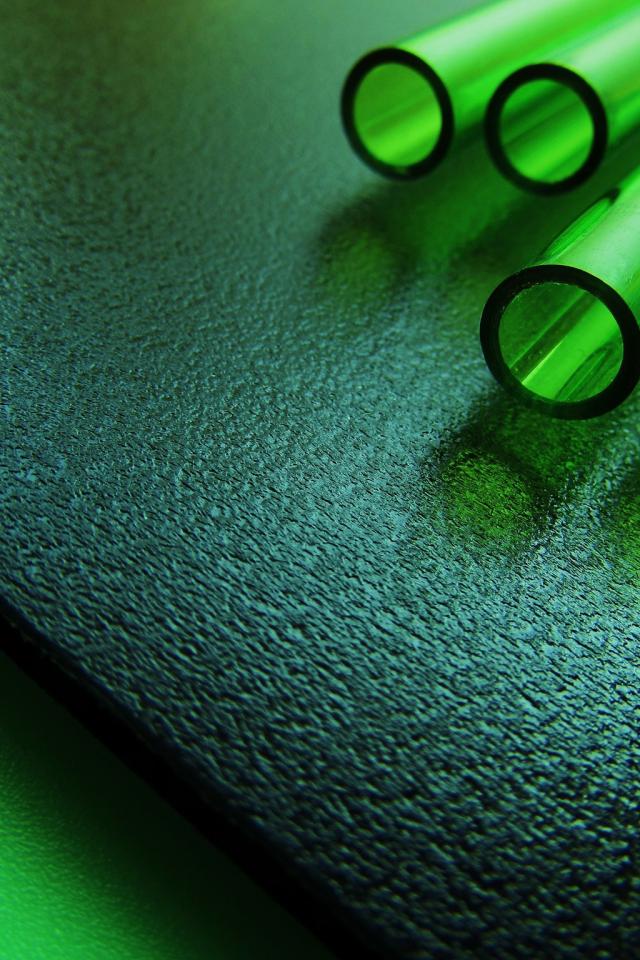 Wallpaper Tubes of green glass on a black plate