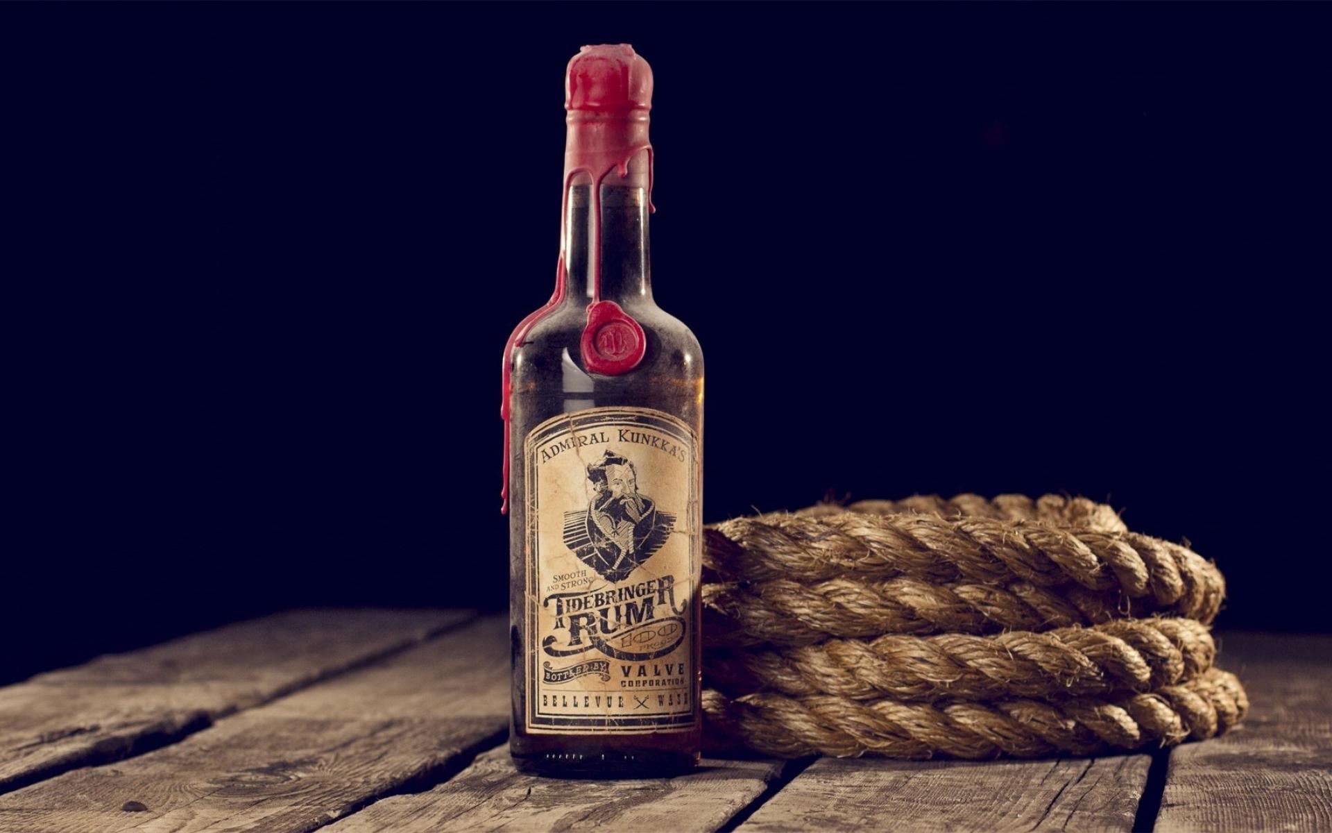 Wallpaper A bottle of rum and a rope