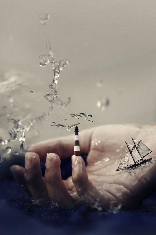 Wallpaper The boat and the lighthouse on the hand