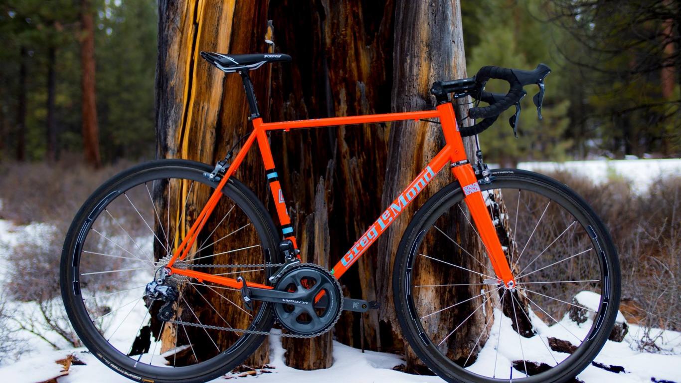 Wallpaper Orange bicycle against a tree