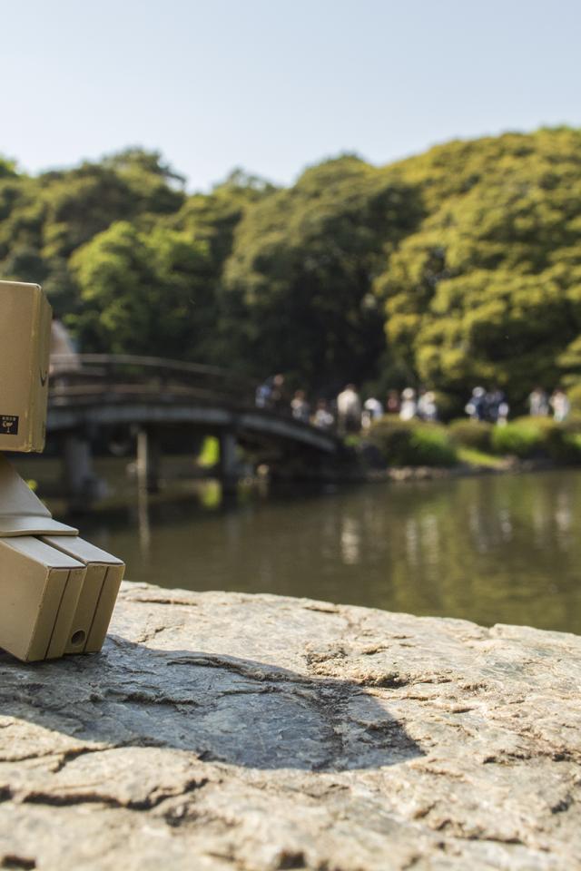Wallpaper Cardboard man on a rock in the garden