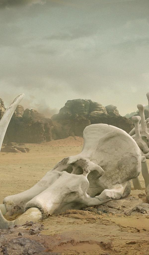 Wallpaper The skeleton of mammoth in the desert