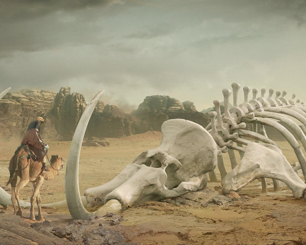 Wallpaper The skeleton of mammoth in the desert