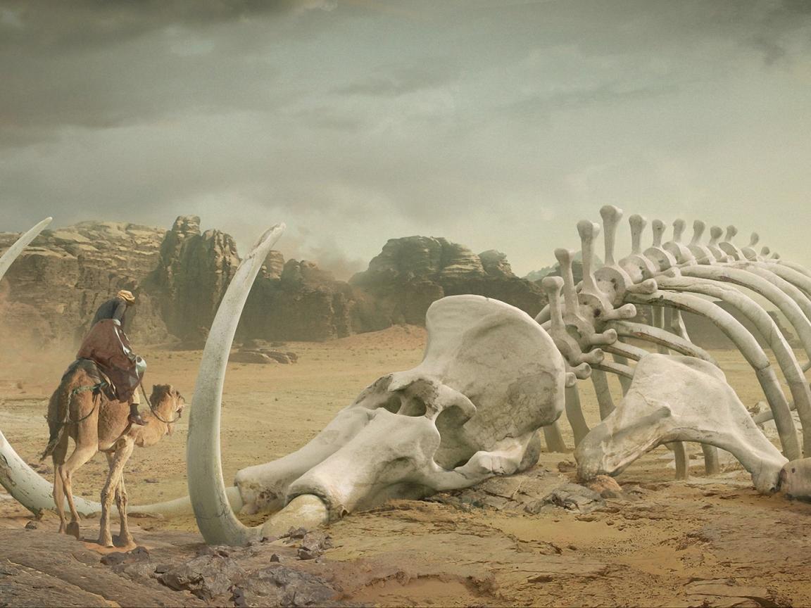 Wallpaper The skeleton of mammoth in the desert