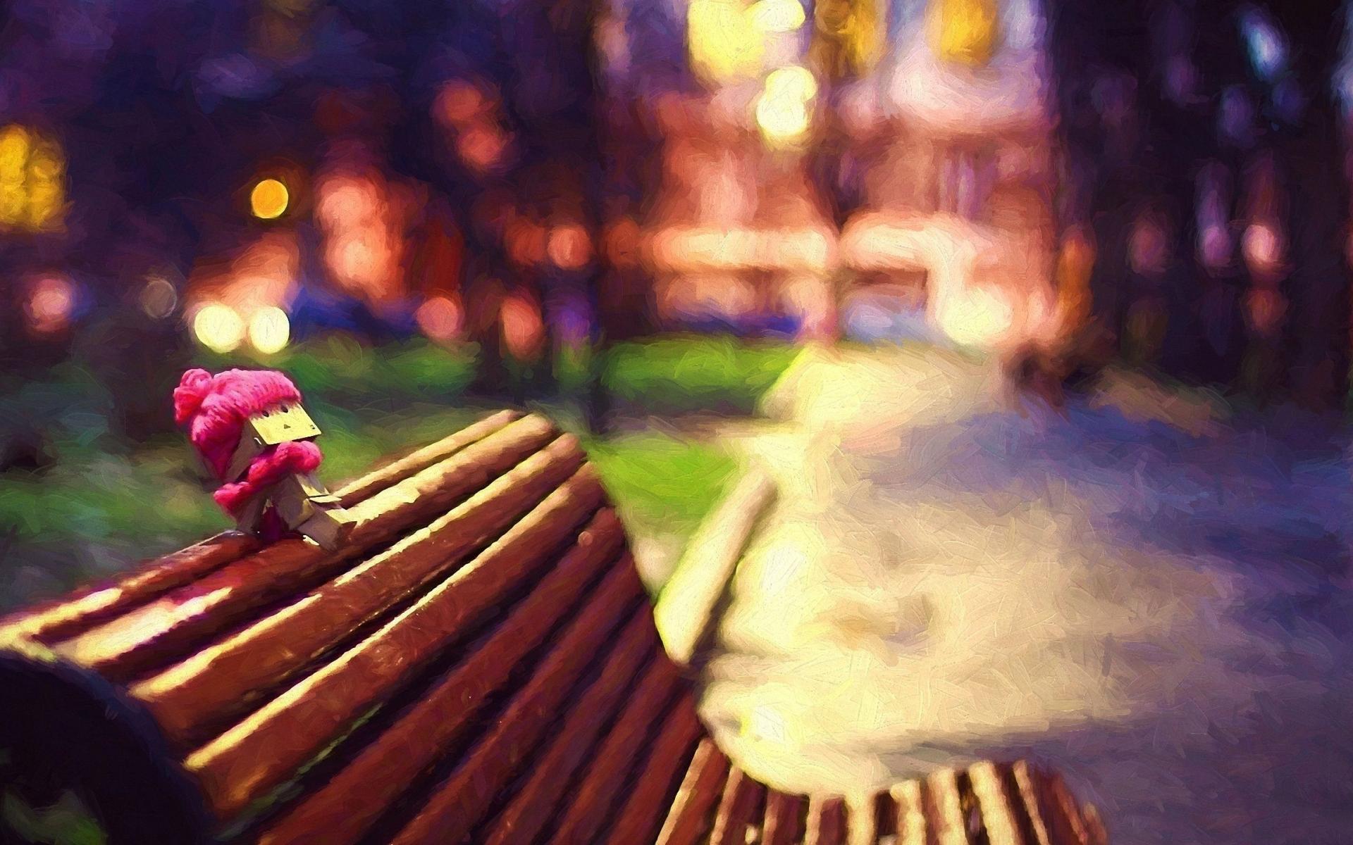 Wallpaper The man of cardboard on the bench