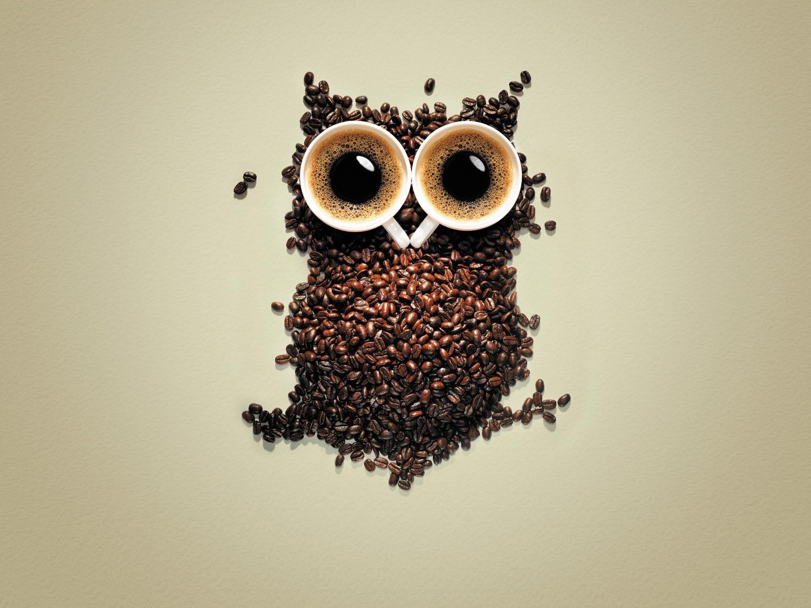 Wallpaper Owl from coffee, gray background