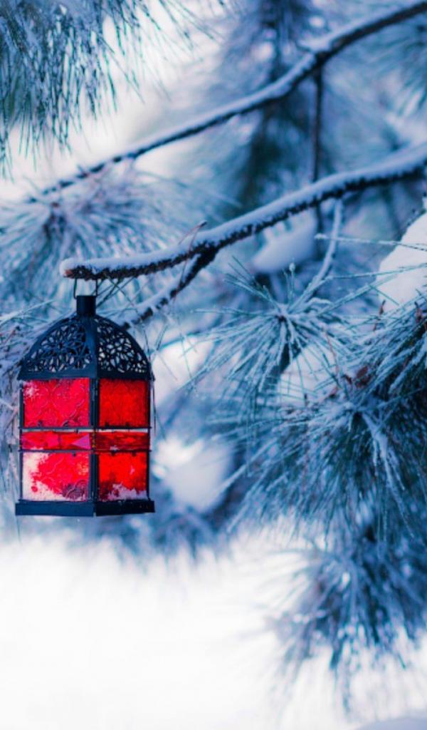 Wallpaper Red flashlight on spruce branch