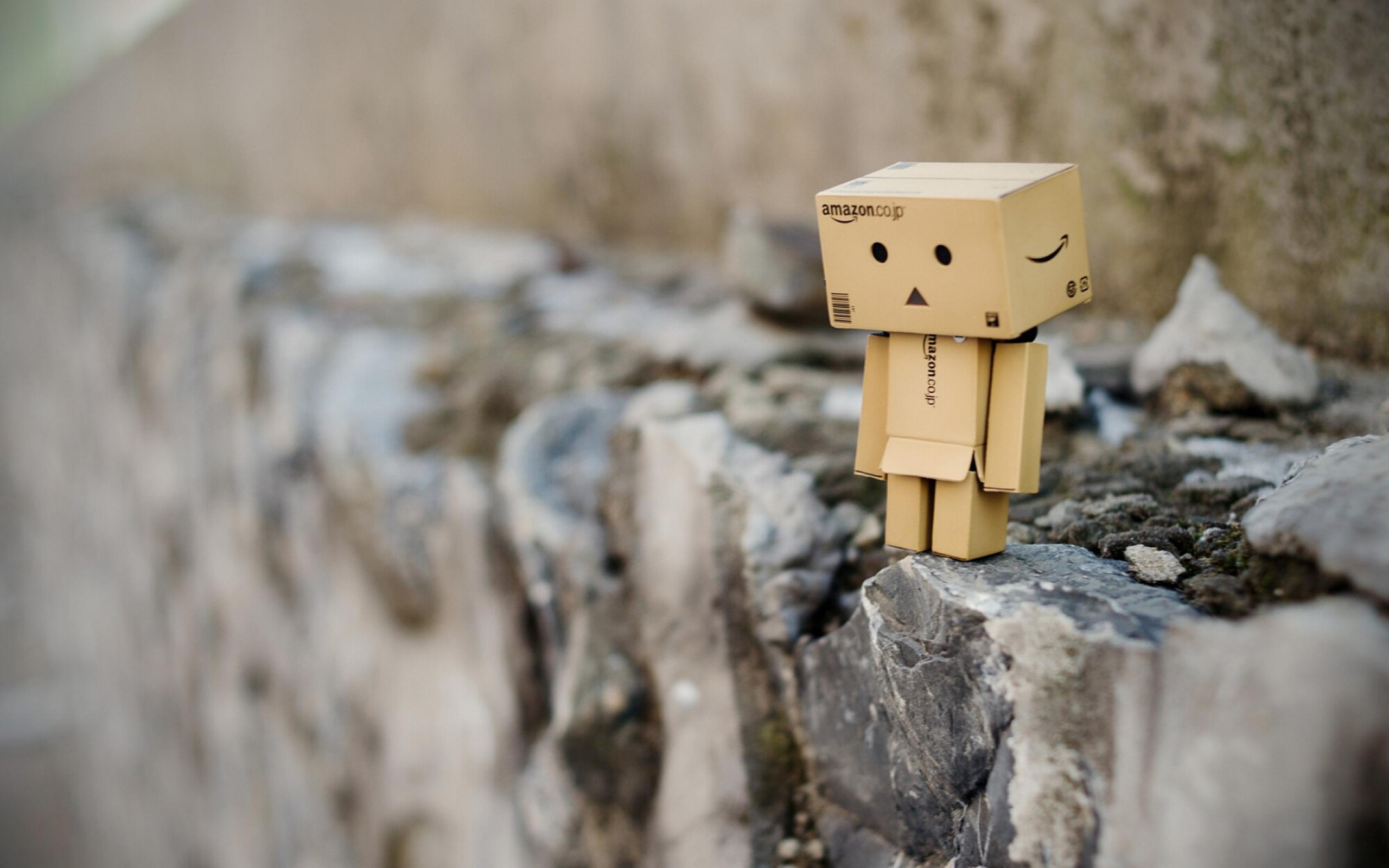 Wallpaper Cardboard man on a rock