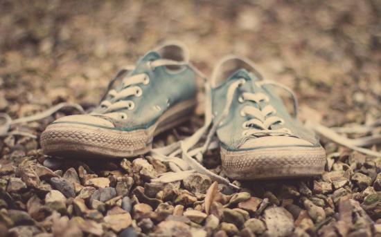 Wallpaper Old sneakers on gravel