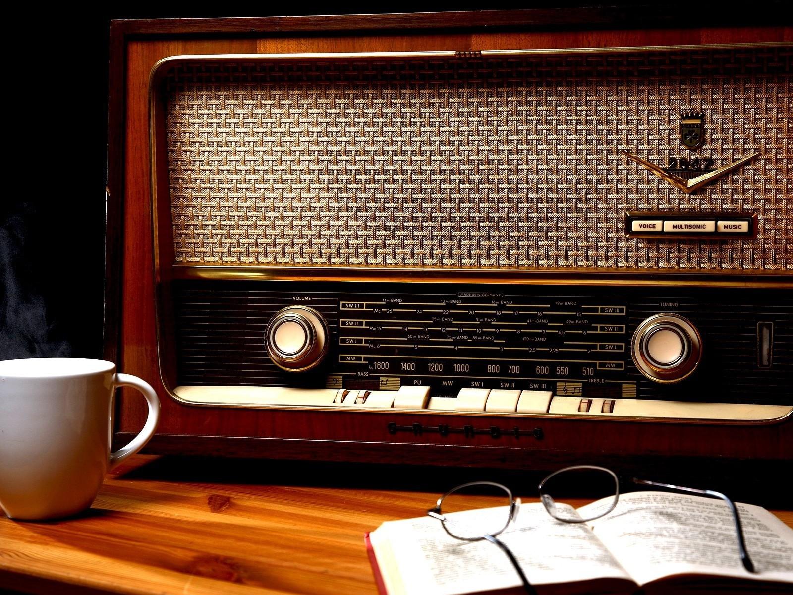 Wallpaper Vintage radio and book