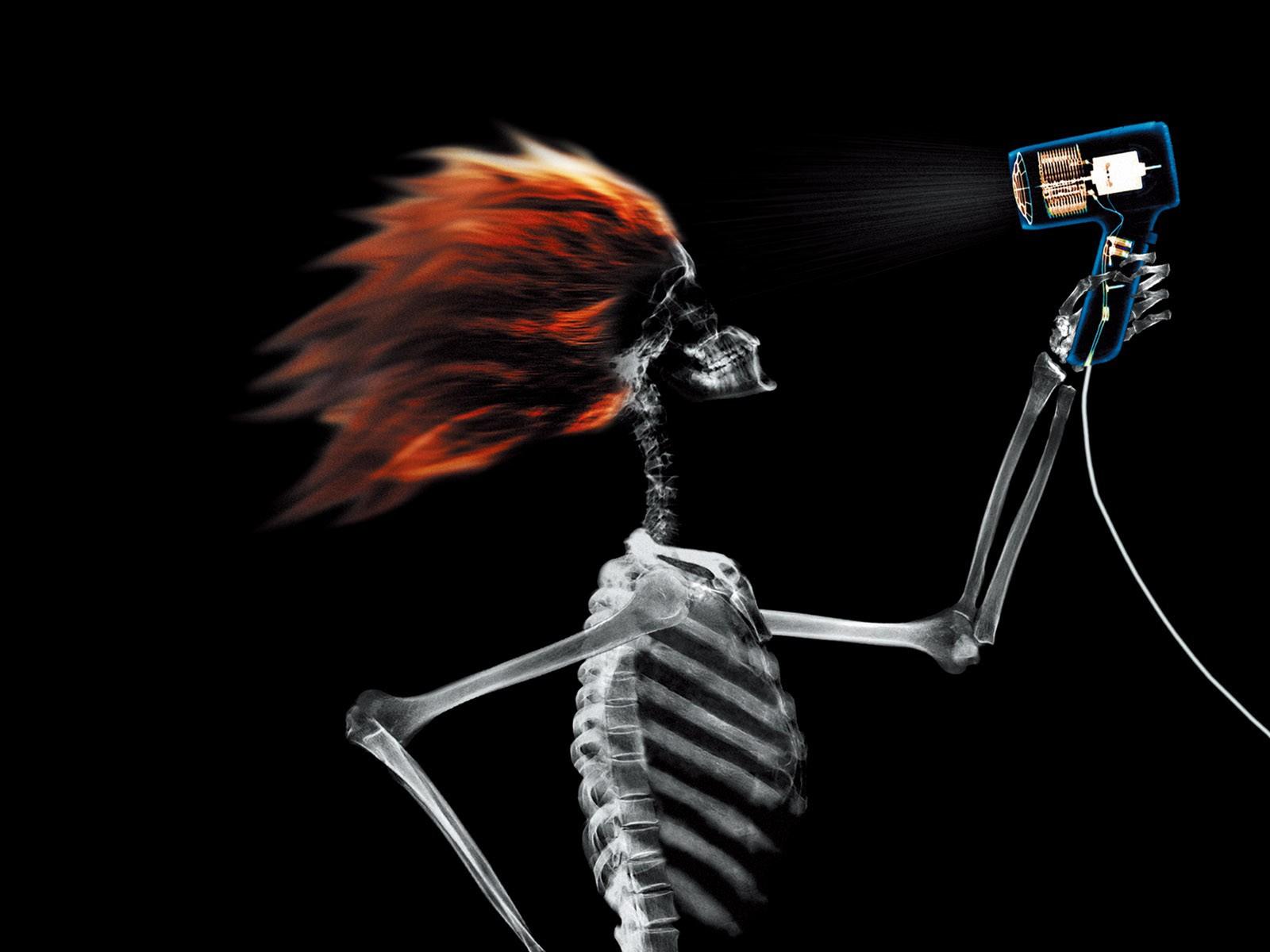 Wallpaper X-rays of a girl with a hairdryer