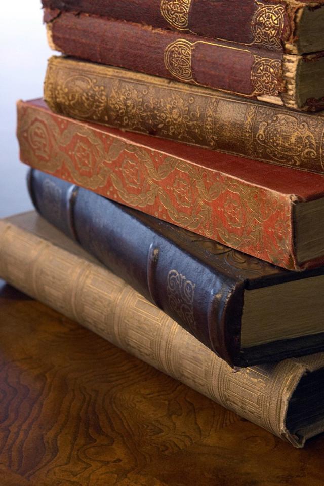 Wallpaper A stack of old books on a wooden surface