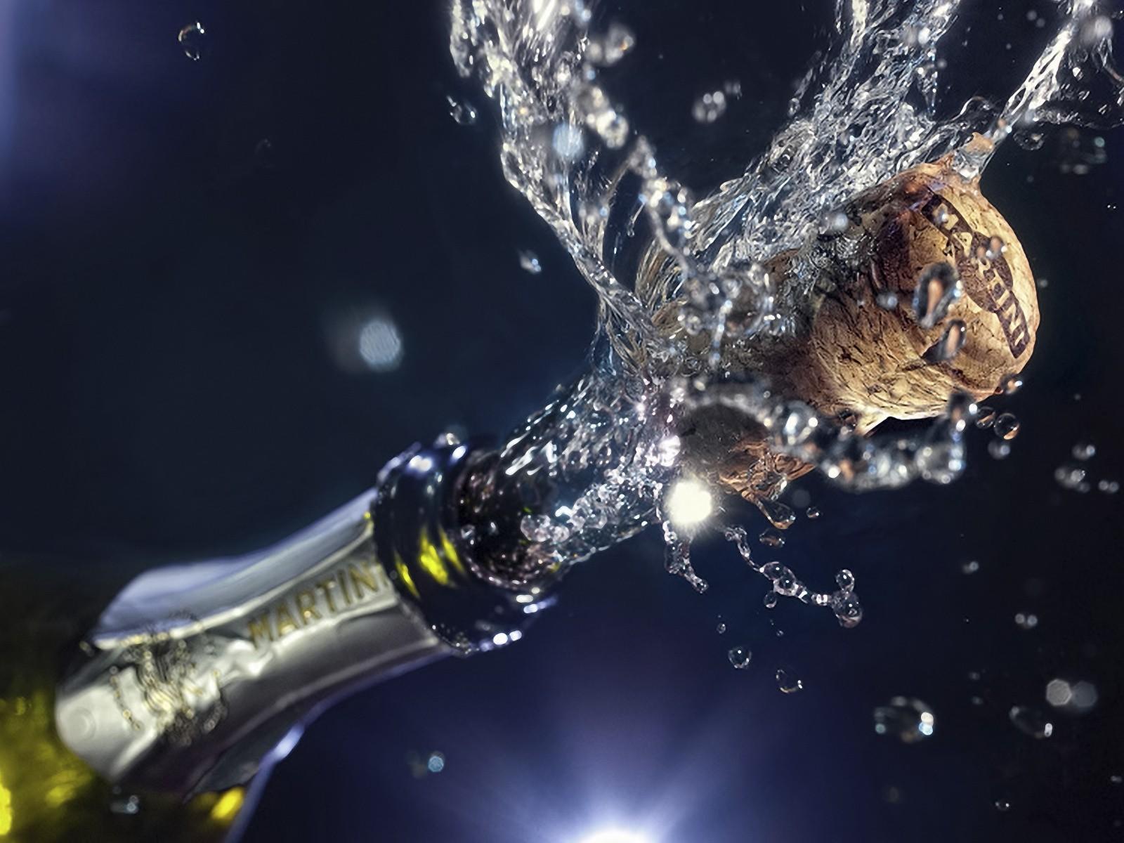 Wallpaper Cork flying out of a bottle of champagne