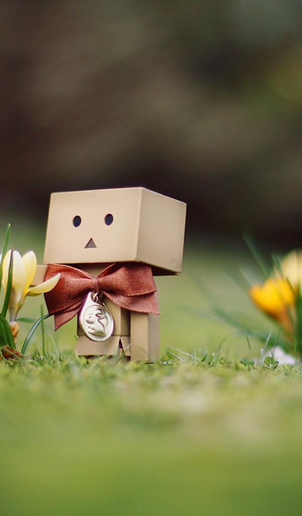 Wallpaper Cardboard man cares for flowers