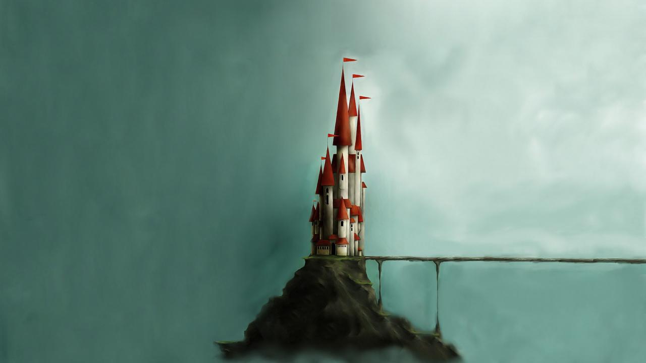 Wallpaper Small castle on a rock, minimalism