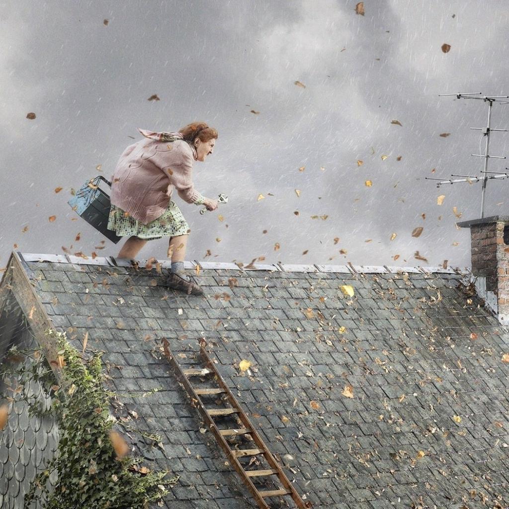 Wallpaper Grandma has been repairing the roof