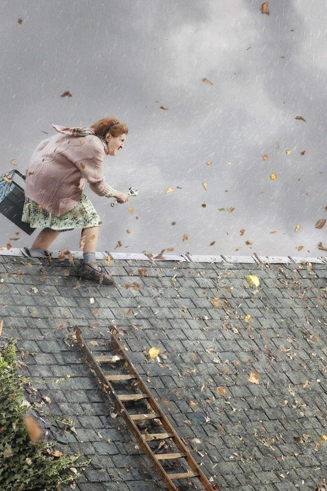 Wallpaper Grandma has been repairing the roof