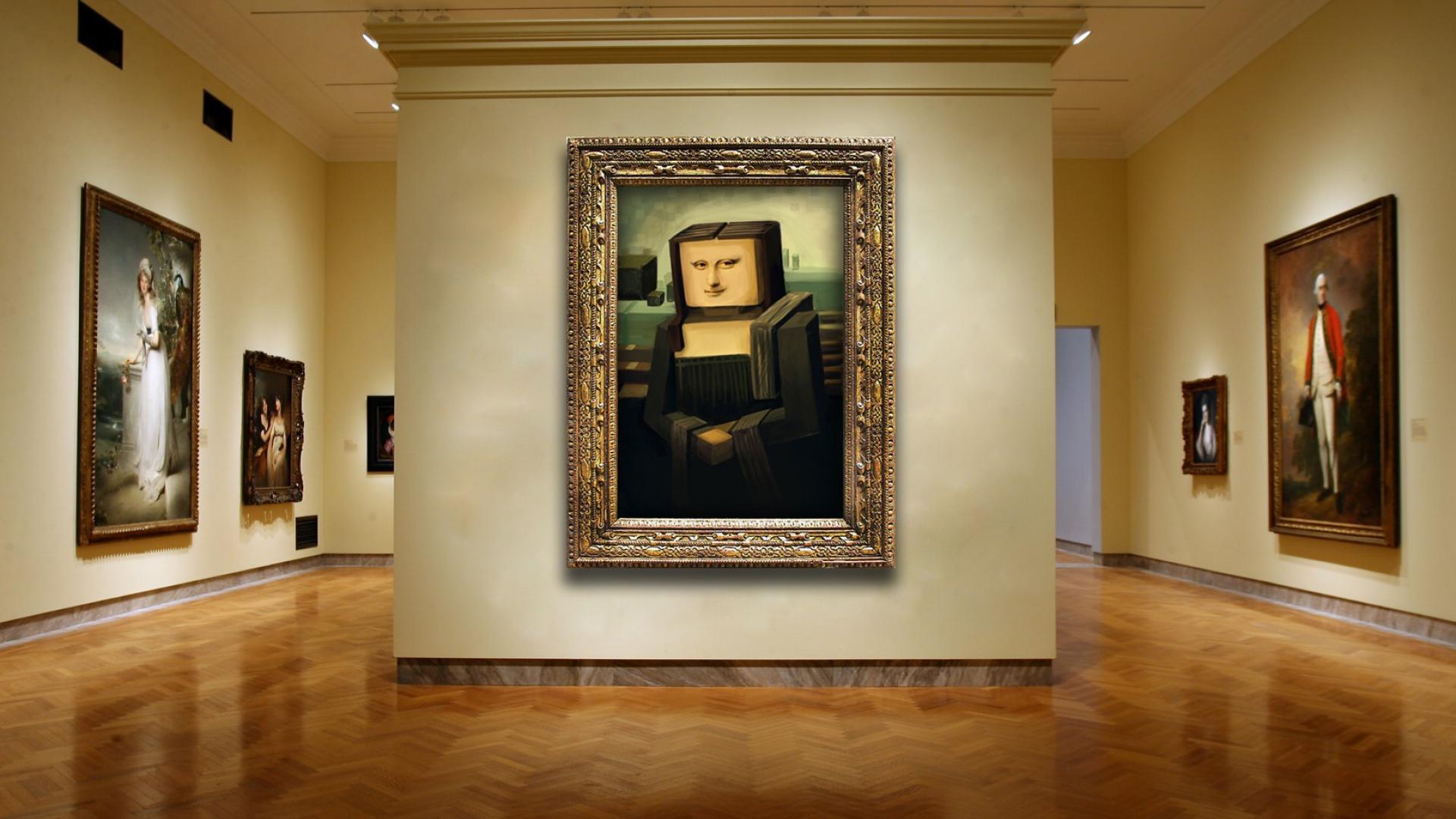 Wallpaper Mona Lisa in the style of Minecraft