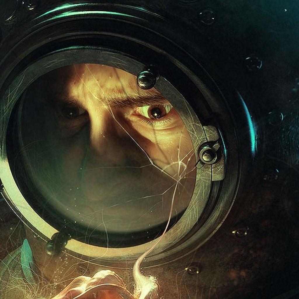 Wallpaper The crack on the glass helmet diver