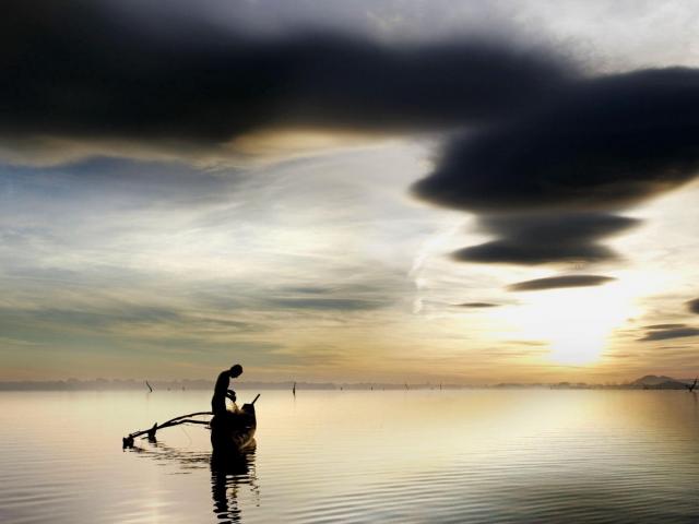 Wallpaper Fisherman pulls out the catch of his boat