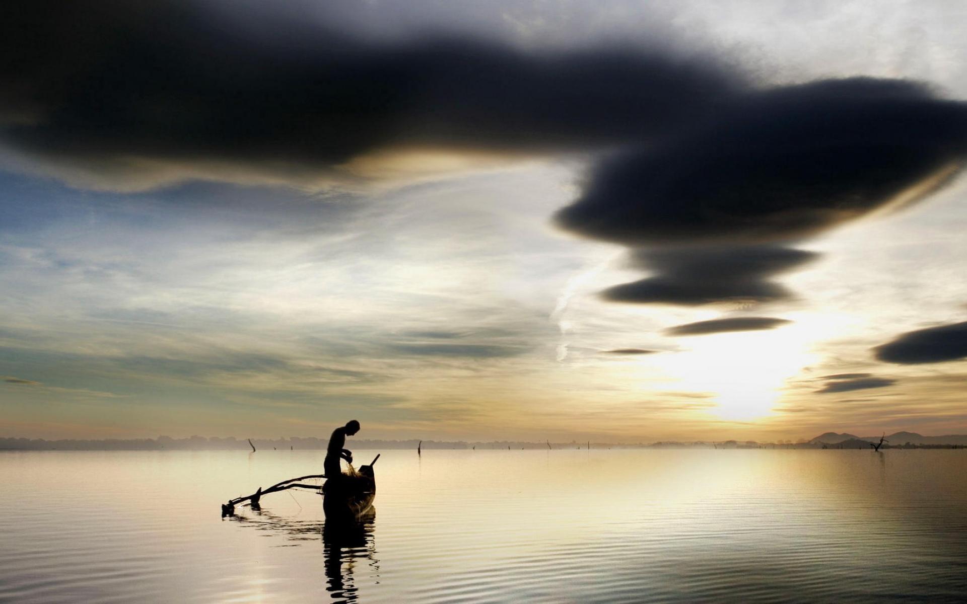 Wallpaper Fisherman pulls out the catch of his boat