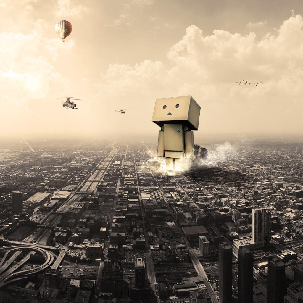 Wallpaper Cardboard man destroys the city