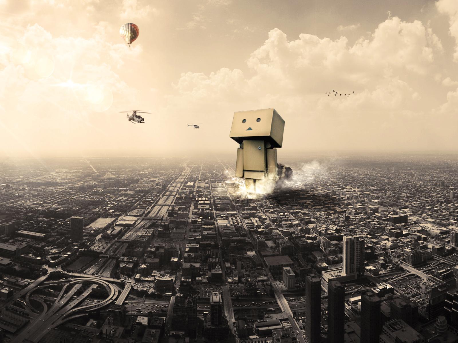 Wallpaper Cardboard man destroys the city