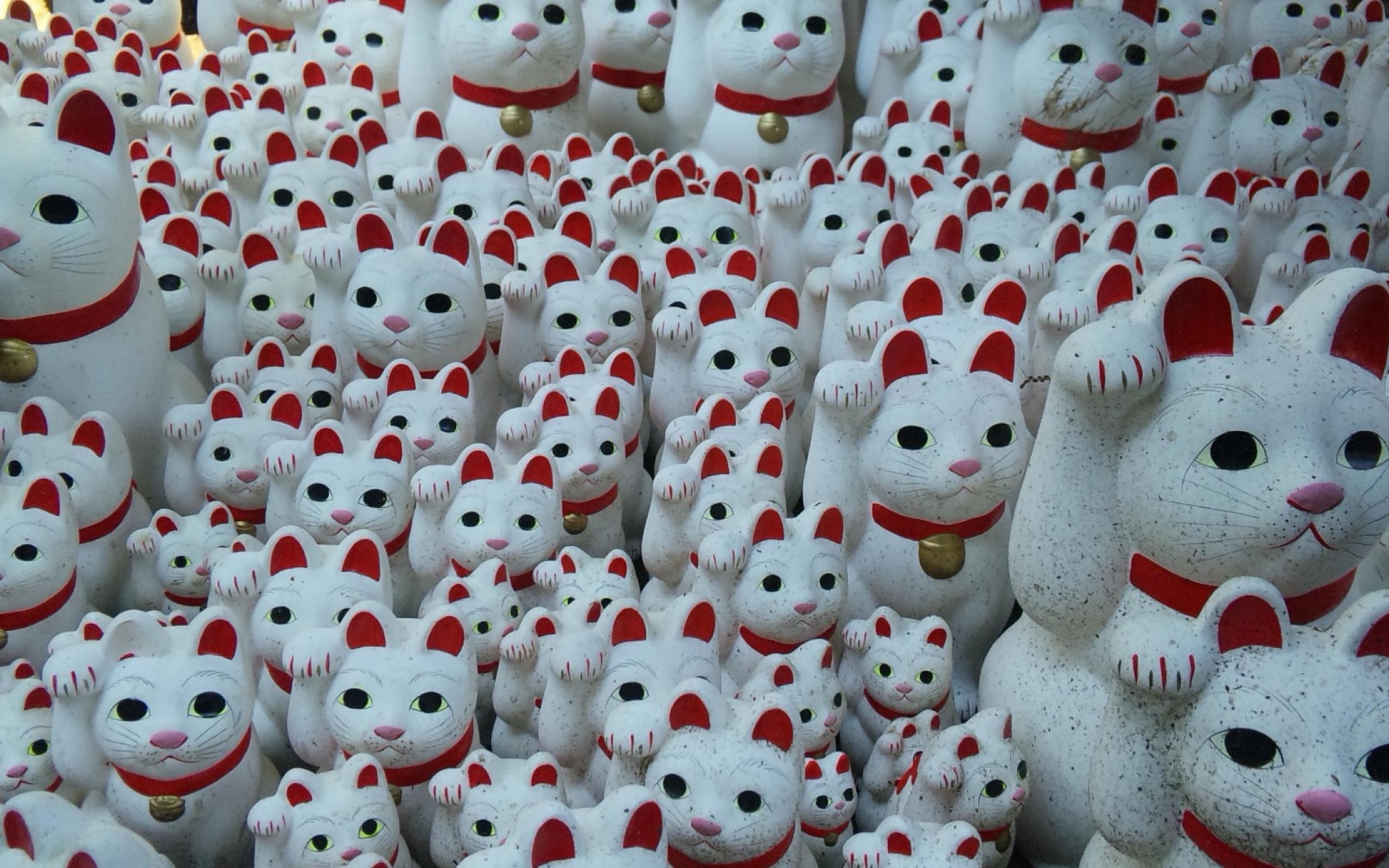 Wallpaper White ceramic figurines of cats