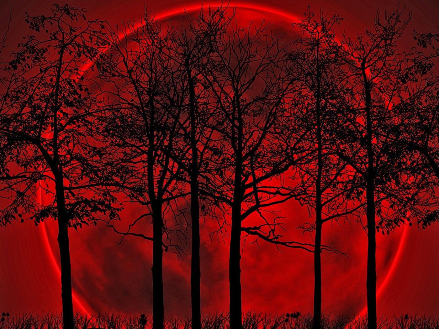 Wallpaper Trees on the background of the bloody moon