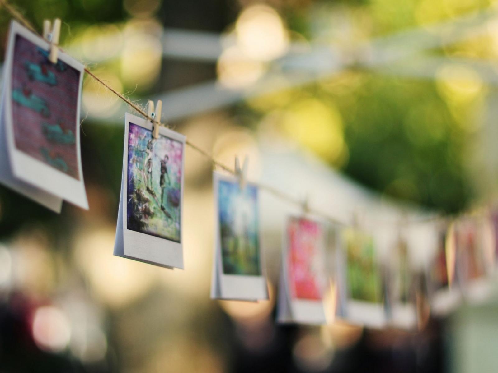 Wallpaper Photos hanging on a rope