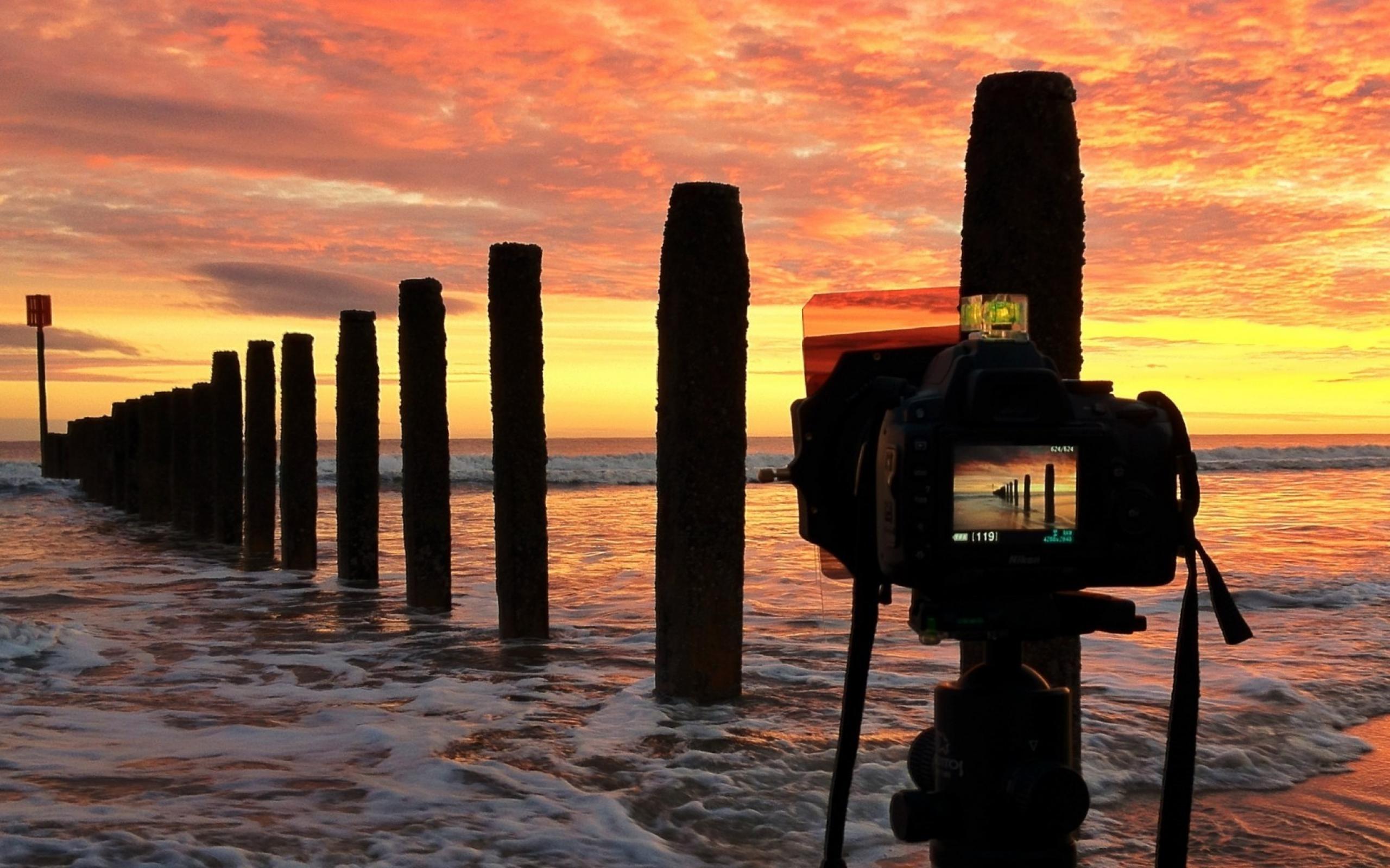 Wallpaper Photographer takes a sunset on the beach