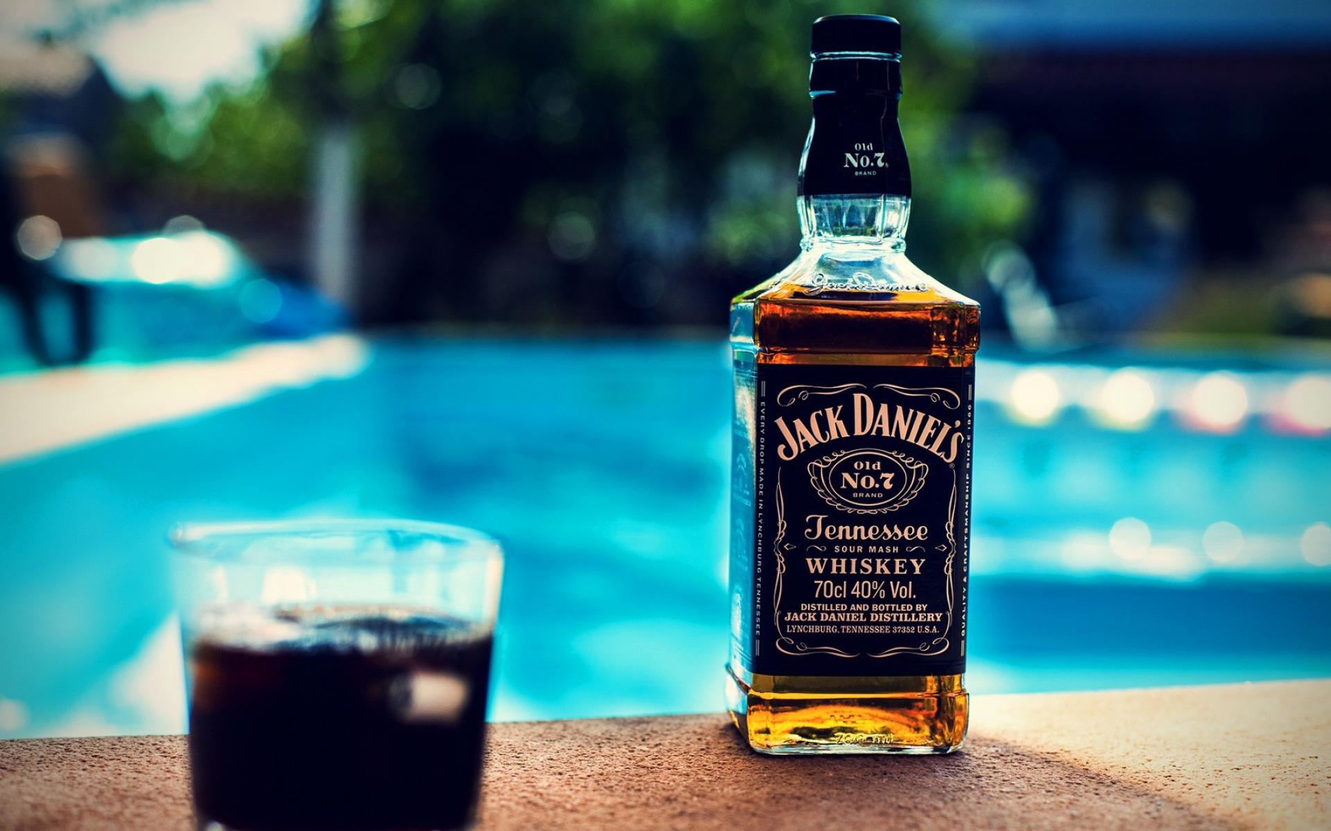 Wallpaper Bottle of alcohol on the edge of the pool
