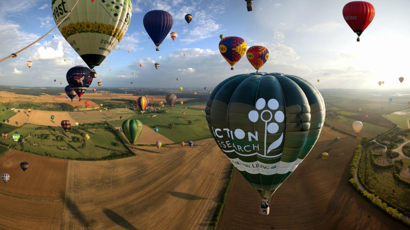 Wallpaper Balloon flight over land