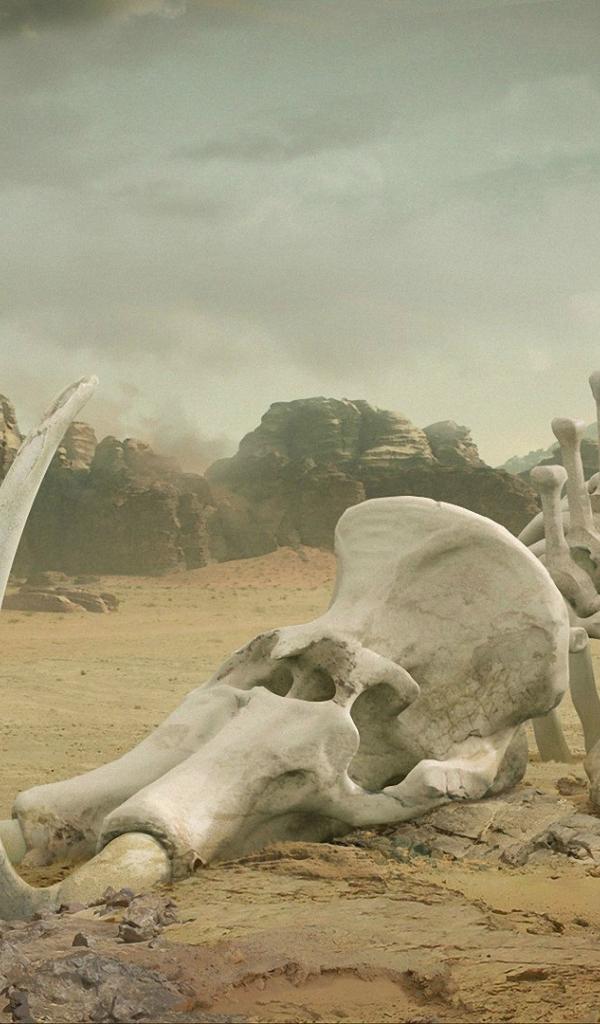 Wallpaper The skeleton of a mammoth in the desert