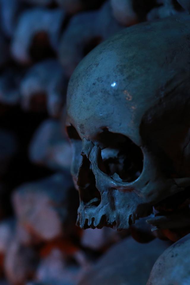 Wallpaper Skull among the bones in the crypt