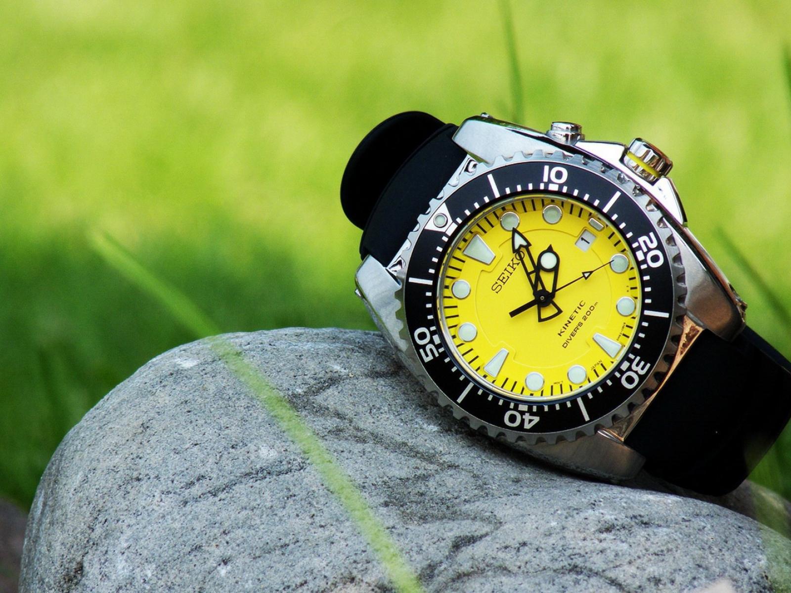 Wallpaper Yellow clock on a stone