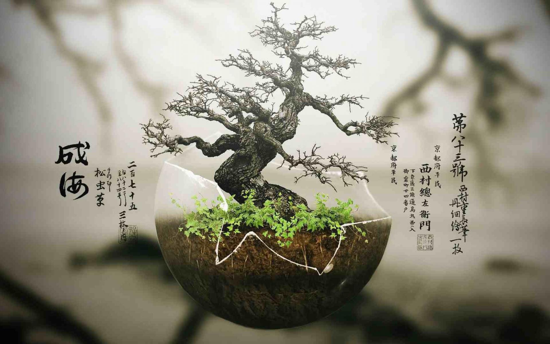 Wallpaper Japanese bonsai in a transparent shell
