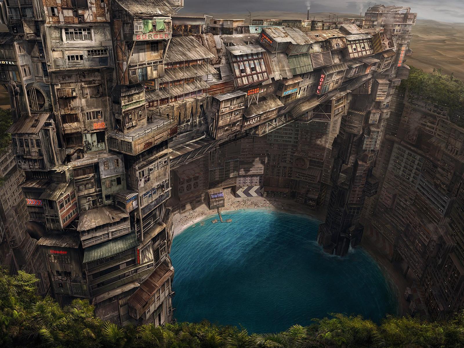 Wallpaper Wooden city in the desert
