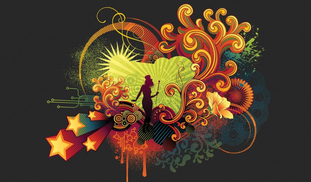 Wallpaper The silhouette of the girl on the ornament