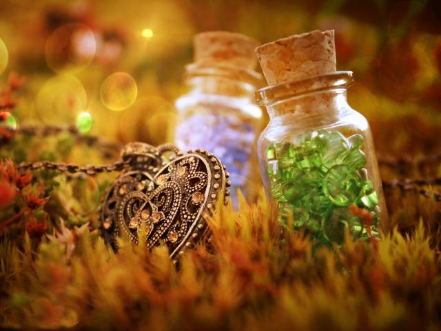 Wallpaper Glass of beer among the mountain caps from beer bottles